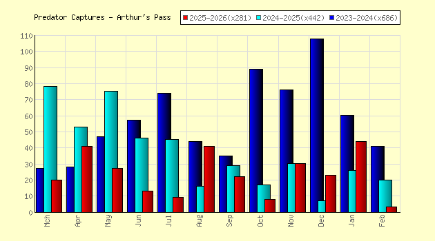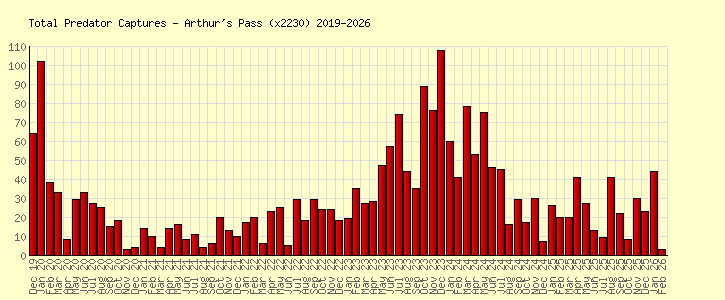 | 01/01/2026 | Bealey Spur W | BWST009 | Comment Only | Rebaited with Fishy cube |