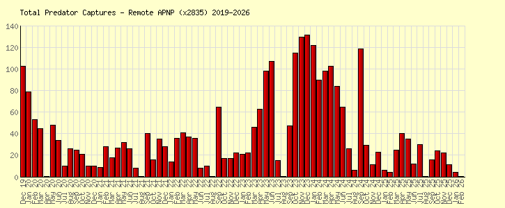 | 01/01/2026 | Bealey Spur W | BWST008 | Comment Only | Rebaited with Fishy cube |